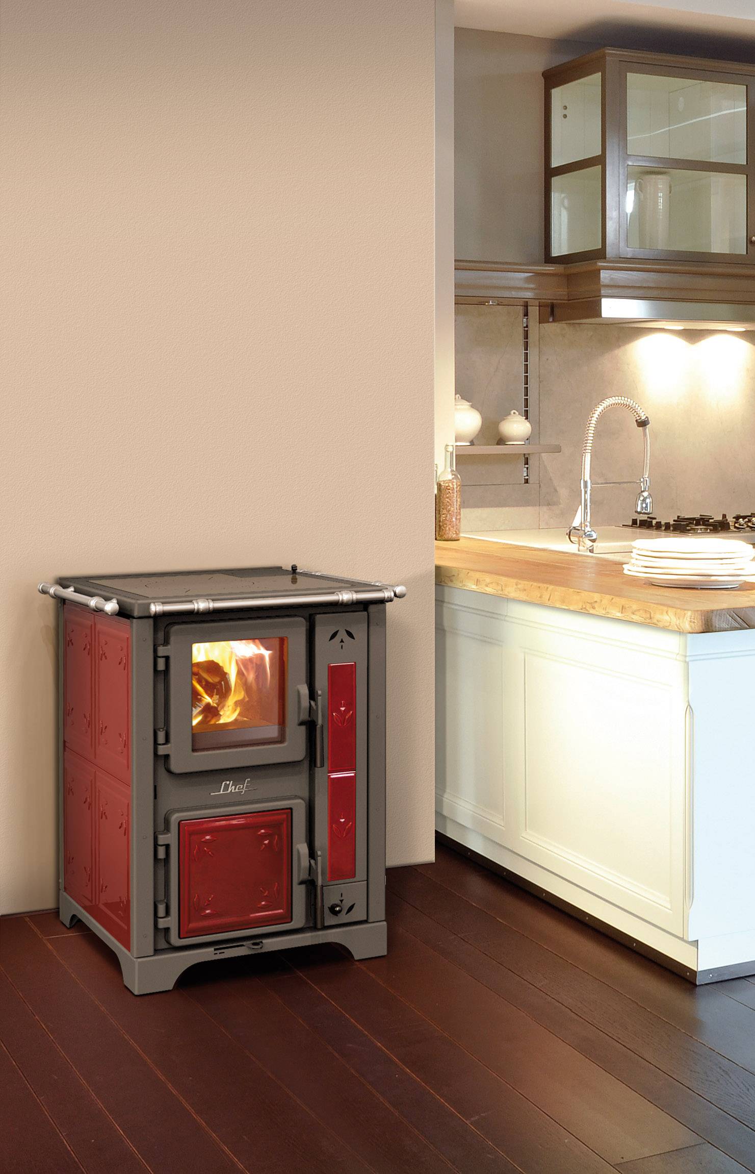 Thermorossi Bosky Chef Fiori Wood Stove Only In Red